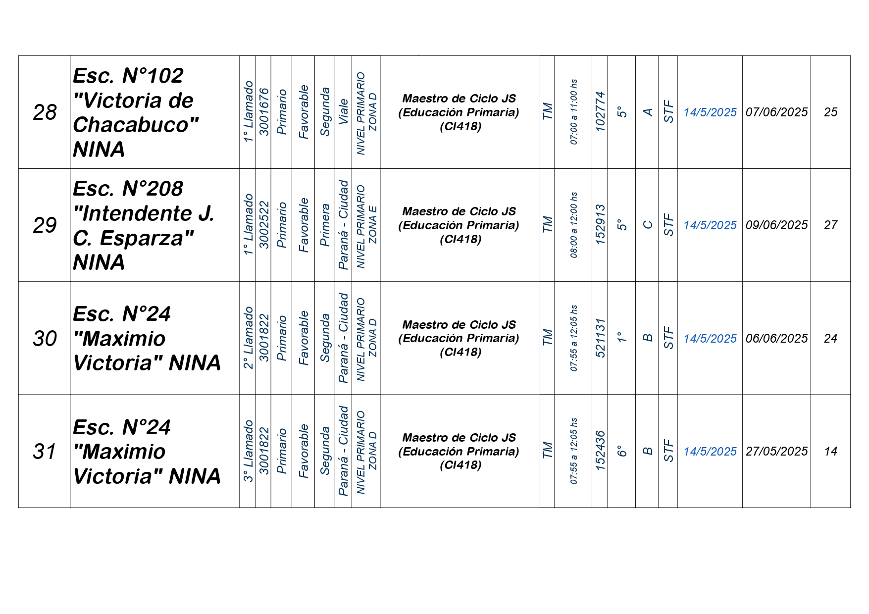 La Dirección Departamental de Escuelas Paraná Convoca a concurso presencial para el día MIERCOLES 14 de MAYO de 2025 a partir de las 08:00 hs, en las instalaciones de la Biblióteca Pedagógica, sita en calle Belgrano 165 – De la Ciudad de Paraná, para la cobertura de Cargos de Ascenso e Ingresao de Nivel Inicial – Primario y Modalidades. En el marco del Acuerdo Paritario /Reglamento de Concursos Resolución Ministerial Nº 783 M.T. (Res. 1000/13) – Resolución Nº 0691/21 CGE y sus modificatorias,- De Director, Resolución Nº 1200/22 C.G.E. y modificatorias – De Vicedirector, Resolución Nº 1200/22 C.G.E. y modificatorias – Listado de Suplencias vigentes: Listado de Suplencias de Ascenso Nº 188 y el Listado de Suplencias de Ingreso Nº 188. Resol. 3100-24-CGE-Autodesplazamiento.-