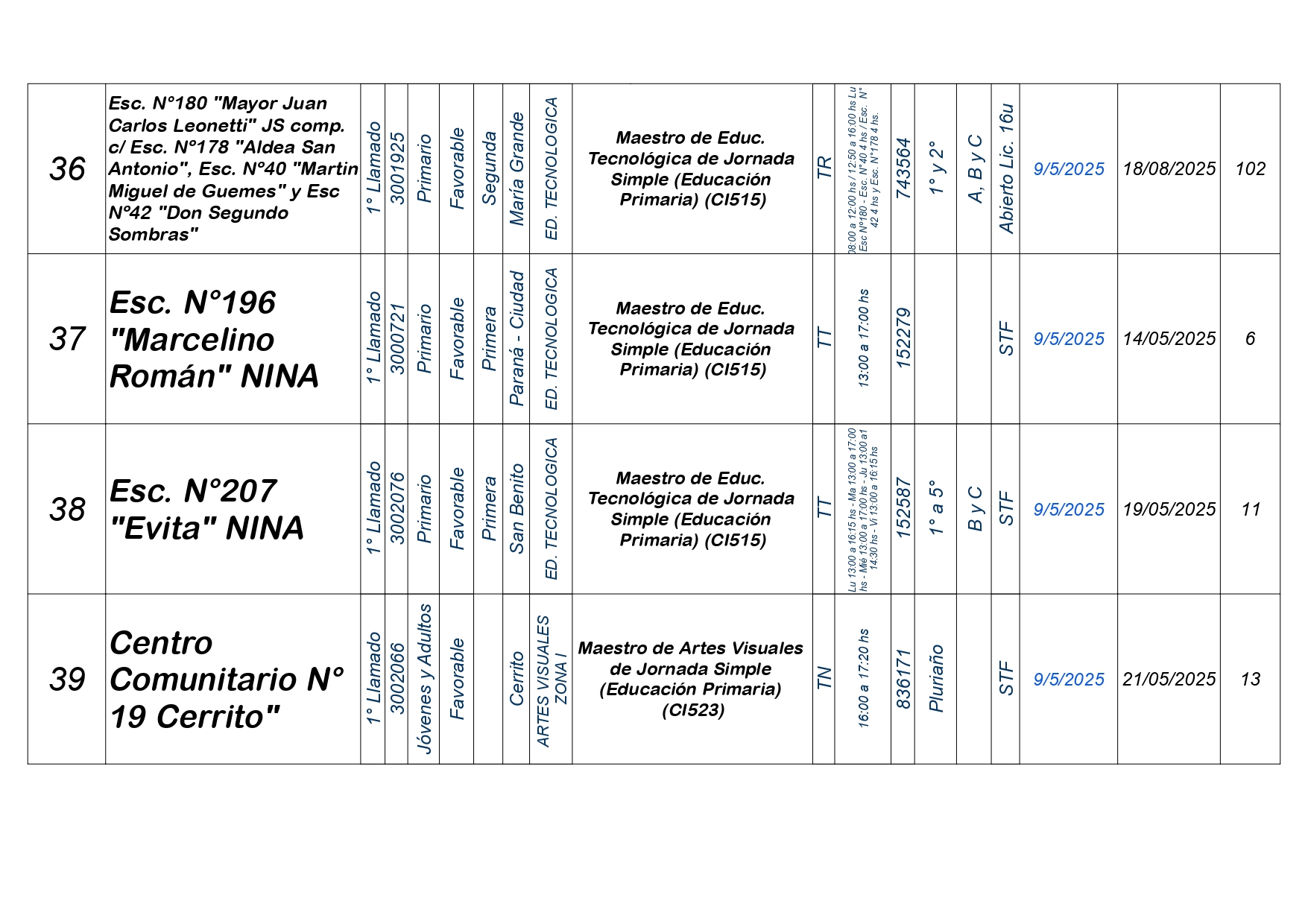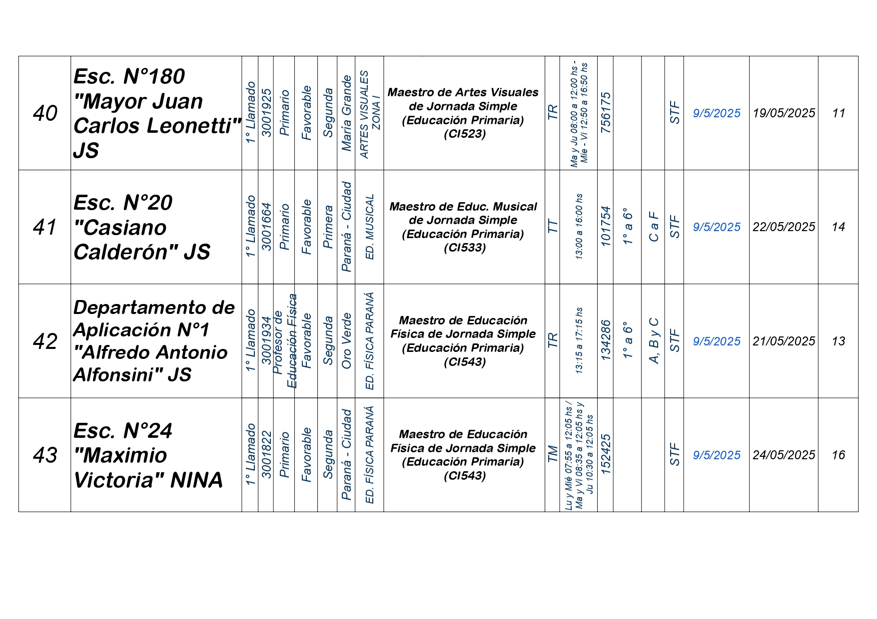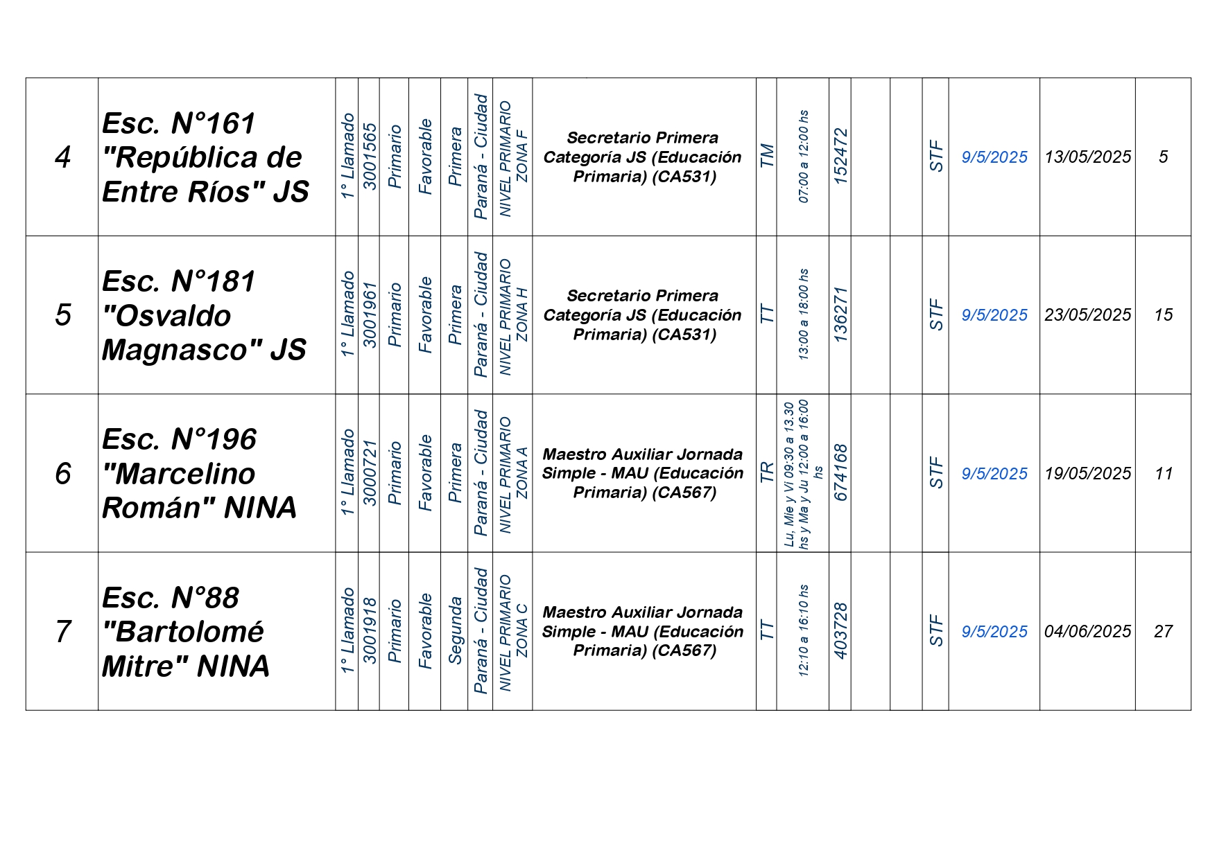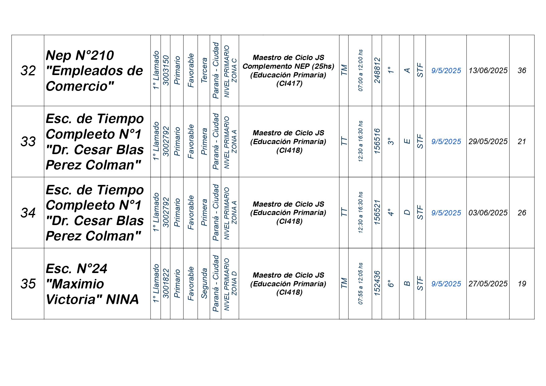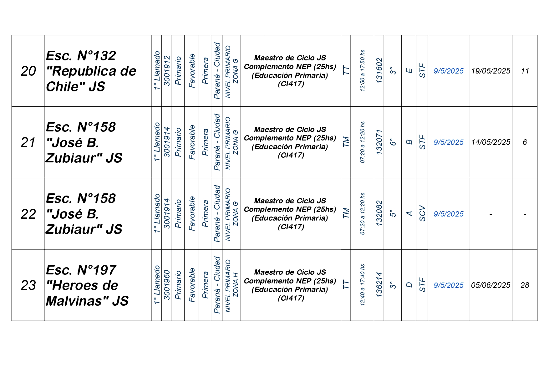 La Dirección Departamental de Escuelas Paraná Convoca a concurso presencial para el día VIERNES 9 de MAYO de 2025 a partir de las 08:00 hs, en las instalaciones de la Biblióteca Pedagógica, sita en calle Belgrano 165 – De la Ciudad de Paraná, para la cobertura de Cargos de Ascenso e Ingresao de Nivel Inicial – Primario y Modalidades. En el marco del Acuerdo Paritario /Reglamento de Concursos Resolución Ministerial Nº 783 M.T. (Res. 1000/13) – Resolución Nº 0691/21 CGE y sus modificatorias,- De Director, Resolución Nº 1200/22 C.G.E. y modificatorias – De Vicedirector, Resolución Nº 1200/22 C.G.E. y modificatorias – Listado de Suplencias vigentes: Listado de Suplencias de Ascenso Nº 188 y el Listado de Suplencias de Ingreso Nº 188. Resol. 3100-24-CGE-Autodesplazamiento.-