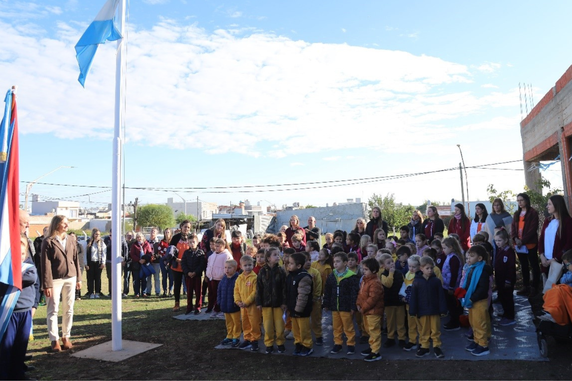 El acto incluyó la colocación de una placa conmemorativa, la entrega de la escritura del terreno donado por el presidente municipal Marcelo Cerrutti y la entrega de una bandera de ceremonias por parte del CGE. Además, los presentes recorrieron el edificio y plantaron árboles en el patio junto a los estudiantes presentes.