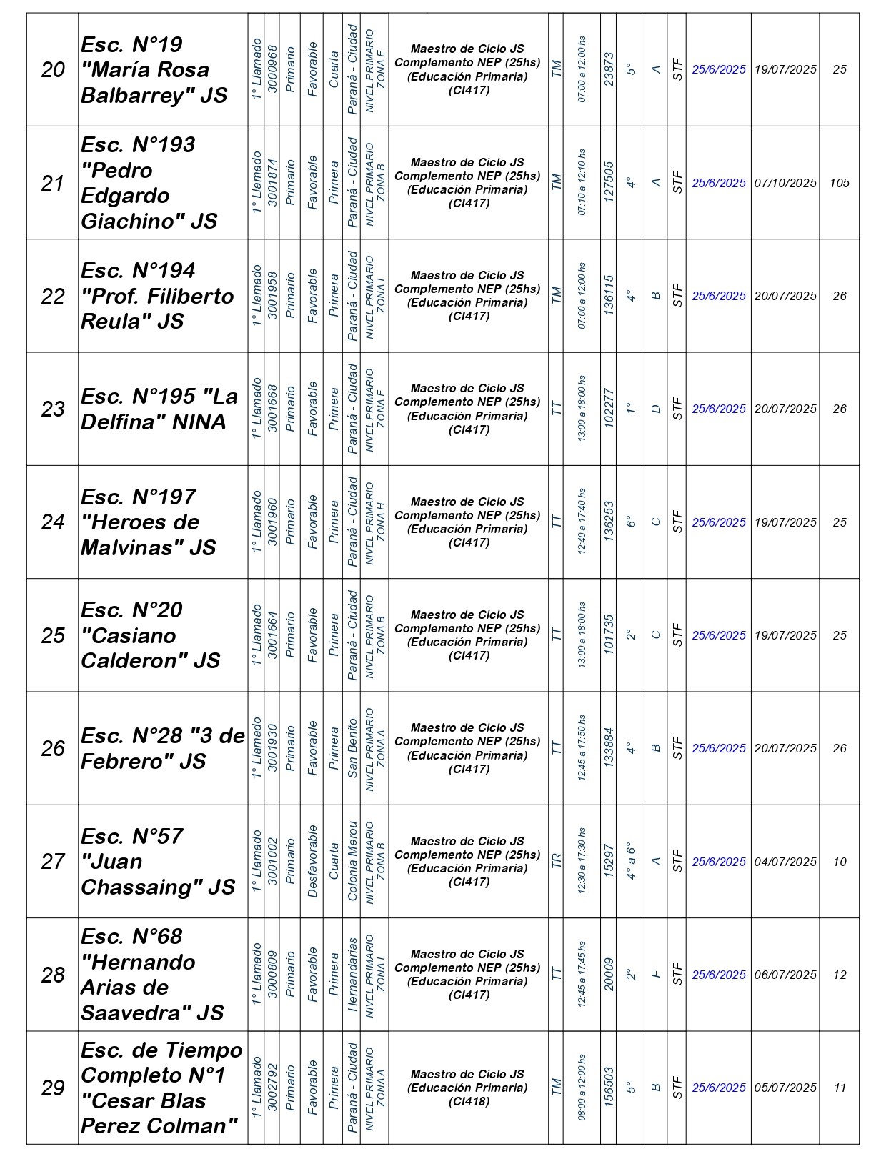 La Dirección Departamental de Escuelas Paraná Convoca a concurso presencial para el día MIERCOLES 25 de JUNIO de 2025 a partir de las 08:00 hs, en las instalaciones de la Biblióteca Pedagógica, sita en calle Belgrano 165 – De la Ciudad de Paraná, para la cobertura de Cargos de Ascenso e Ingresao de Nivel Inicial – Primario y Modalidades. En el marco del Acuerdo Paritario /Reglamento de Concursos Resolución Ministerial Nº 783 M.T. (Res. 1000/13) – Resolución Nº 0691/21 CGE y sus modificatorias,- De Director, Resolución Nº 1200/22 C.G.E. y modificatorias – De Vicedirector, Resolución Nº 1200/22 C.G.E. y modificatorias – Listado de Suplencias vigentes: Listado de Suplencias de Ascenso Nº 188 y el Listado de Suplencias de Ingreso Nº 188. Resol. 3100-24-CGE-Autodesplazamiento.-