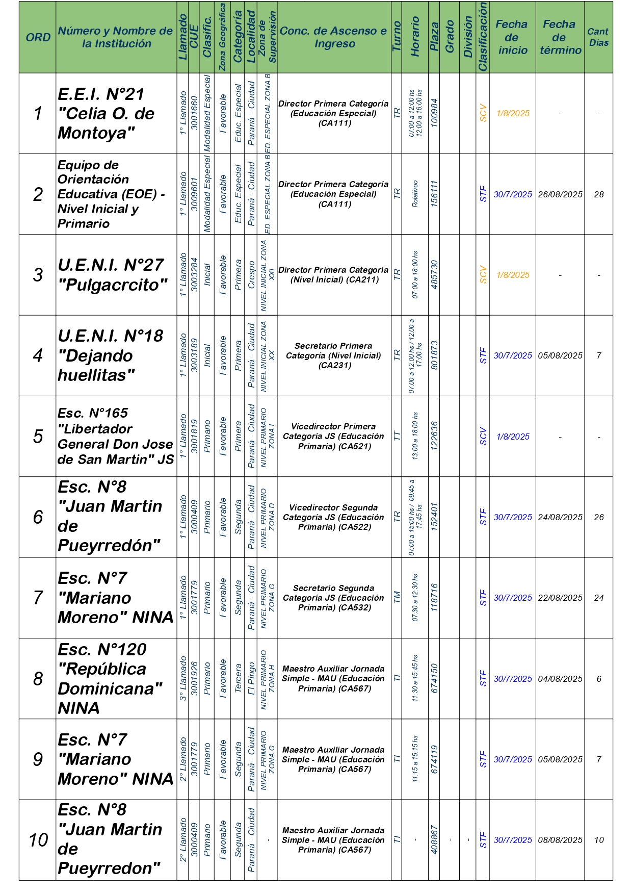 La Dirección Departamental de Escuelas Paraná Convoca a concurso presencial para el día MIERCOLES 30 de JULIO de 2025 a partir de las 08:00 hs, en las instalaciones de la Biblióteca Pedagógica, sita en calle Belgrano 165 – De la Ciudad de Paraná, para la cobertura de Cargos de Ascenso e Ingresao de Nivel Inicial – Primario y Modalidades. En el marco del Acuerdo Paritario /Reglamento de Concursos Resolución Ministerial Nº 783 M.T. (Res. 1000/13) – Resolución Nº 0691/21 CGE y sus modificatorias,- De Director, Resolución Nº 1200/22 C.G.E. y modificatorias – De Vicedirector, Resolución Nº 1200/22 C.G.E. y modificatorias – Listado de Suplencias vigentes: Listado de Suplencias de Ascenso Nº 188 y el Listado de Suplencias de Ingreso Nº 188. Resol. 3100-24-CGE-Autodesplazamiento.-