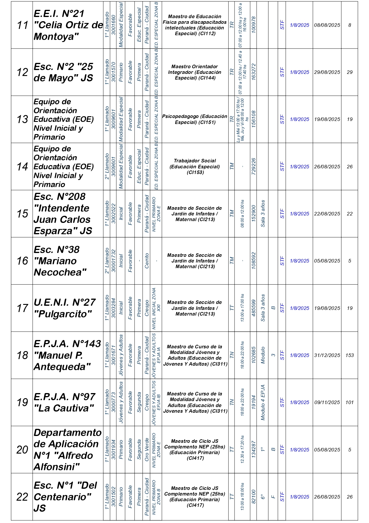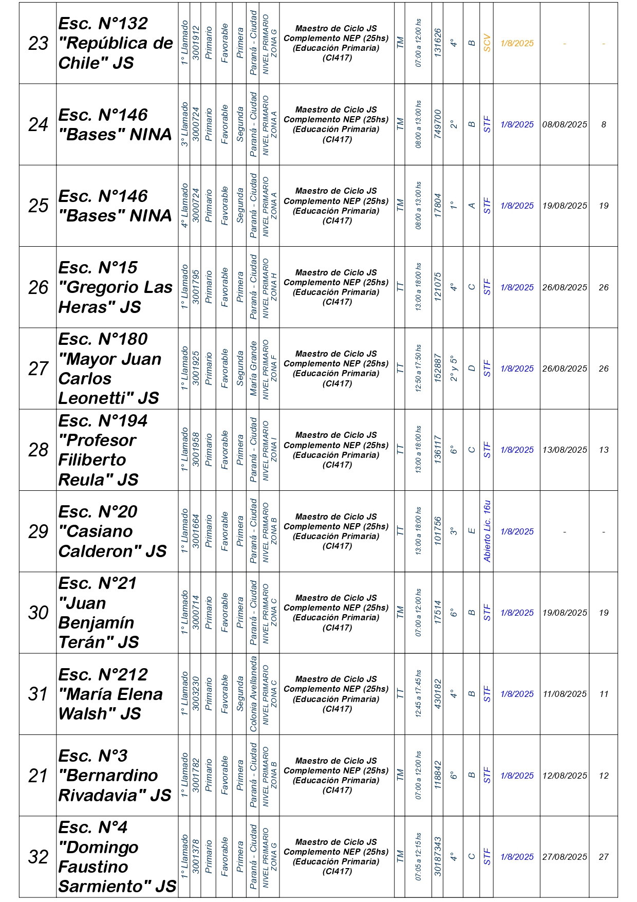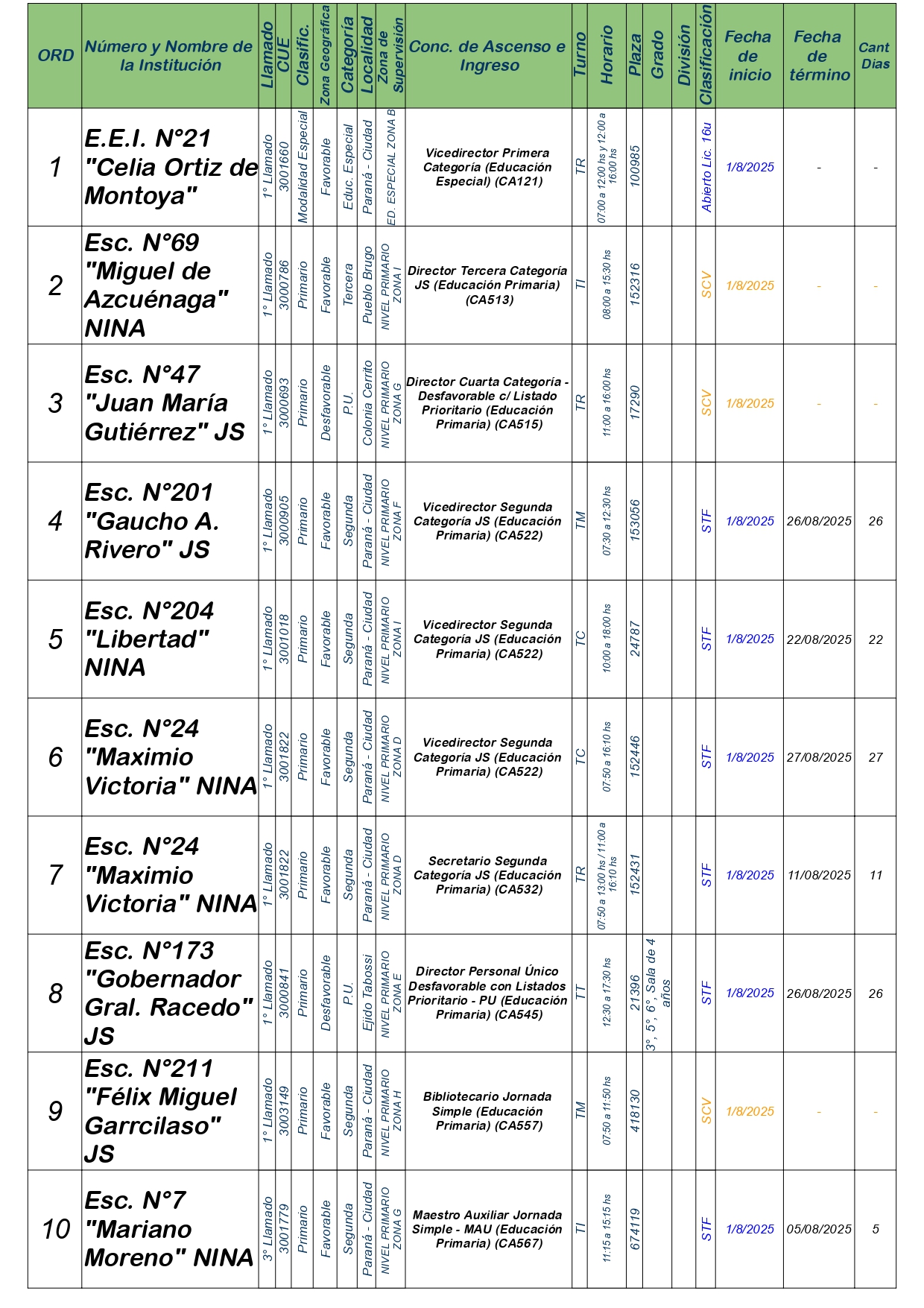 La Dirección Departamental de Escuelas Paraná Convoca a concurso presencial para el día VIERNES 1 de AGOSTO de 2025 a partir de las 08:00 hs, en las instalaciones de la Biblióteca Pedagógica, sita en calle Belgrano 165 – De la Ciudad de Paraná, para la cobertura de Cargos de Ascenso e Ingresao de Nivel Inicial – Primario y Modalidades. En el marco del Acuerdo Paritario /Reglamento de Concursos Resolución Ministerial Nº 783 M.T. (Res. 1000/13) – Resolución Nº 0691/21 CGE y sus modificatorias,- De Director, Resolución Nº 1200/22 C.G.E. y modificatorias – De Vicedirector, Resolución Nº 1200/22 C.G.E. y modificatorias – Listado de Suplencias vigentes: Listado de Suplencias de Ascenso Nº 188 y el Listado de Suplencias de Ingreso Nº 188. Resol. 3100-24-CGE-Autodesplazamiento.-