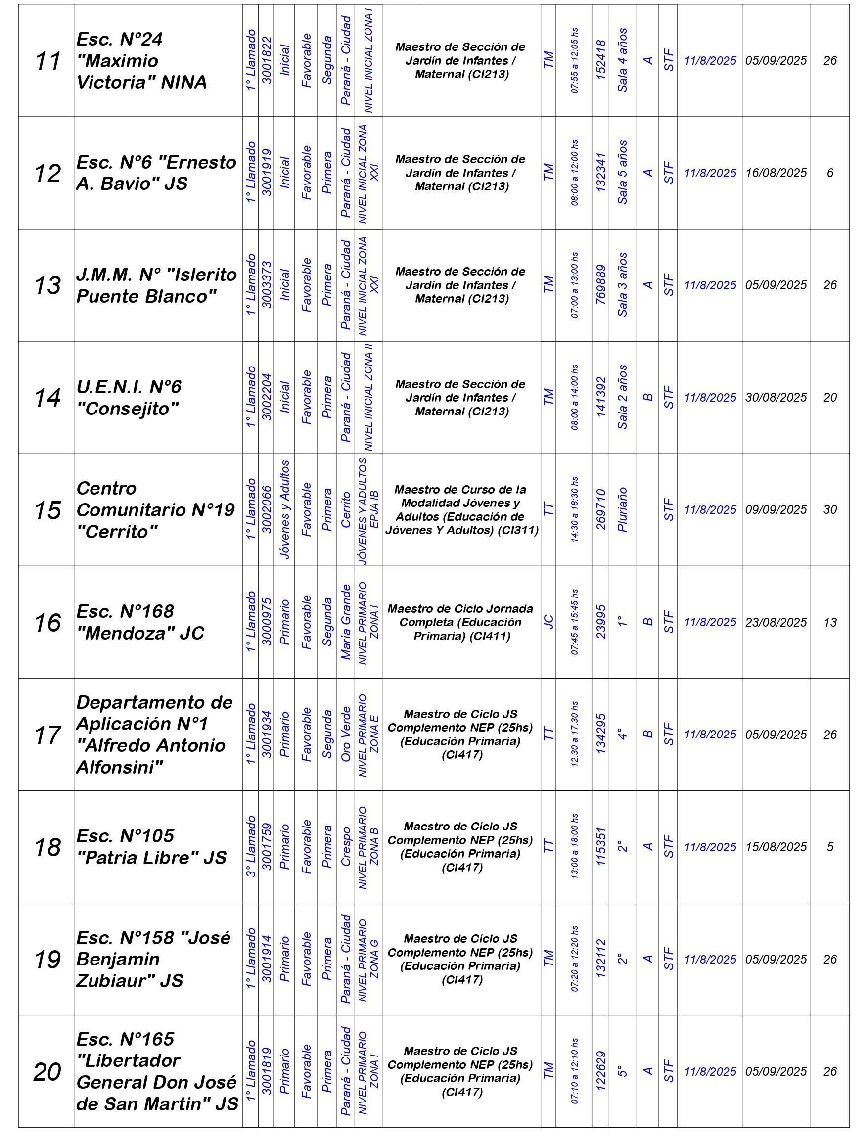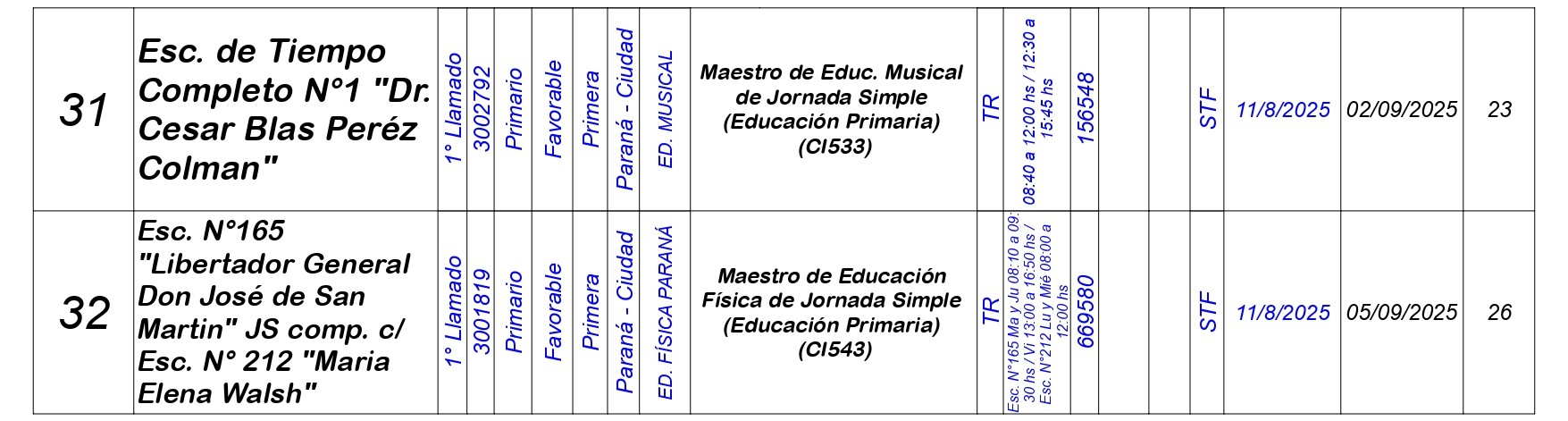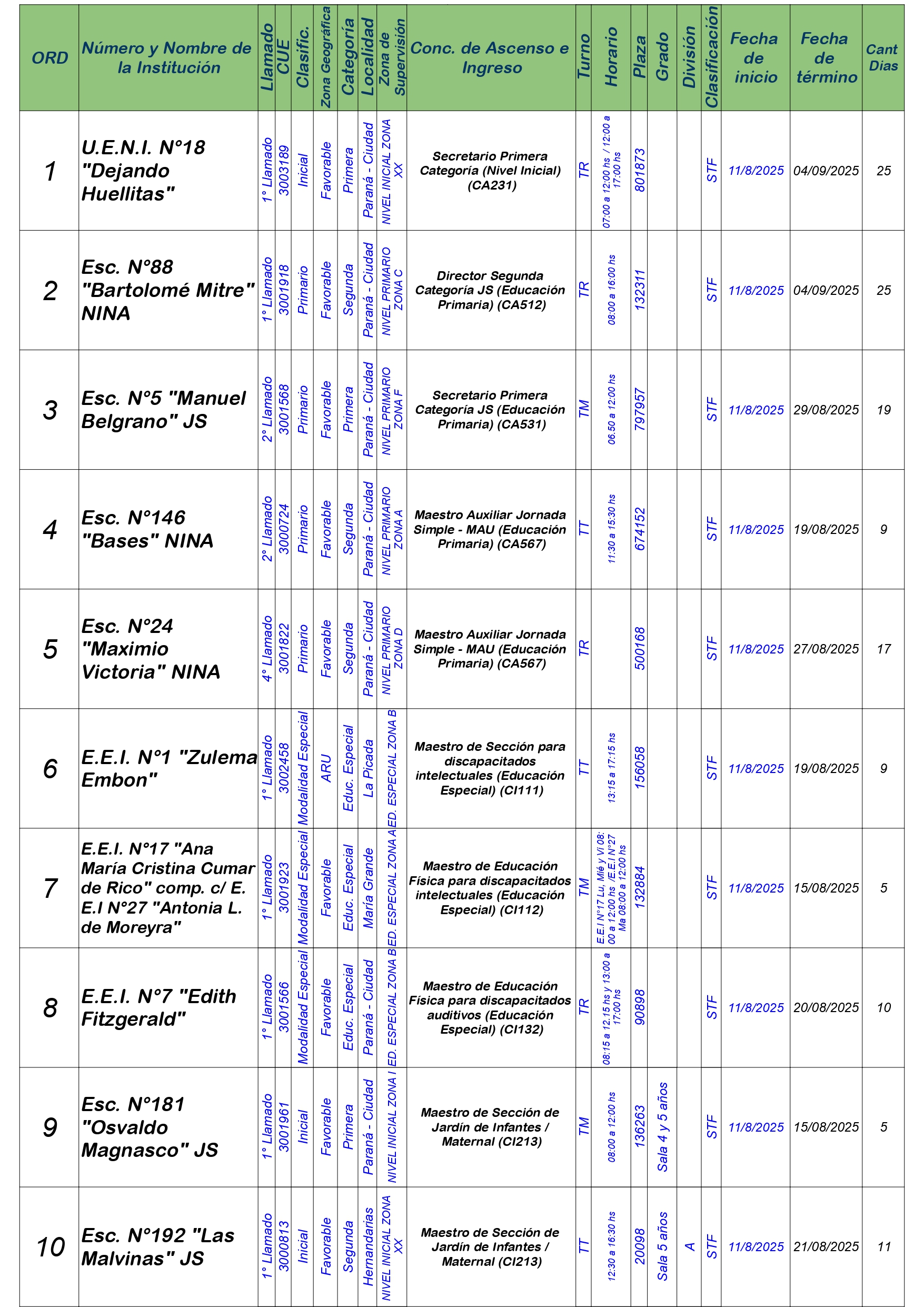 La Dirección Departamental de Escuelas Paraná Convoca a concurso presencial para el día LUNES 11 de AGOSTO de 2025 a partir de las 08:00 hs, en las instalaciones de la Biblioteca Pedagógica, sita en calle Belgrano 165 – De la Ciudad de Paraná, para la cobertura de Cargos de Ascenso e Ingreso de Nivel Inicial – Primario y Modalidades. En el marco del Acuerdo Paritario /Reglamento de Concursos Resolución Ministerial Nº 783 M.T. (Res. 1000/13) – Resolución Nº 0691/21 CGE y sus modificatorias,- De Director, Resolución Nº 1200/22 C.G.E. y modificatorias – De Vicedirector, Resolución Nº 1200/22 C.G.E. y modificatorias – Listado de Suplencias vigentes: Listado de Suplencias de Ascenso Nº 188 y el Listado de Suplencias de Ingreso Nº 188. Resol. 3100-24-CGE-Autodesplazamiento.-