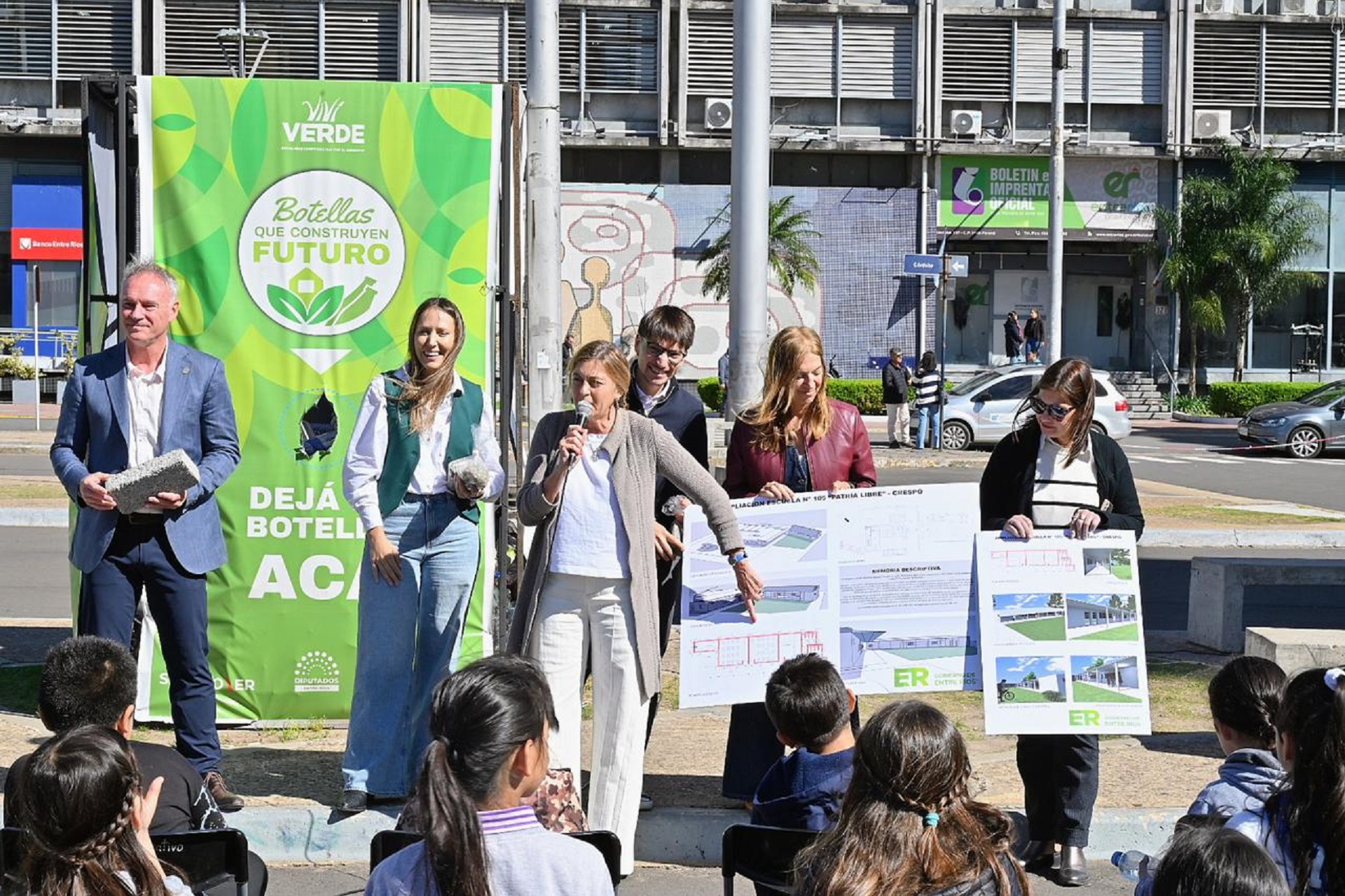 La actividad fue organizada de manera conjunta por la Secretaría de Participación y Atención Ciudadana, bajo la órbita de la Secretaría General de la Gobernación -a cargo de Mauricio Colello-, el Ministerio de Planeamiento, Infraestructura y Servicios y el Consejo General de Educación (CGE). Durante el encuentro, referentes del Parque Ambiental de Crespo brindaron una charla educativa donde se explicó el recorrido del ladrillo PET (polietileno tereftalato), desde la botella reciclada por los chicos hasta su transformación en un material capaz de construir aulas y espacios comunitarios.