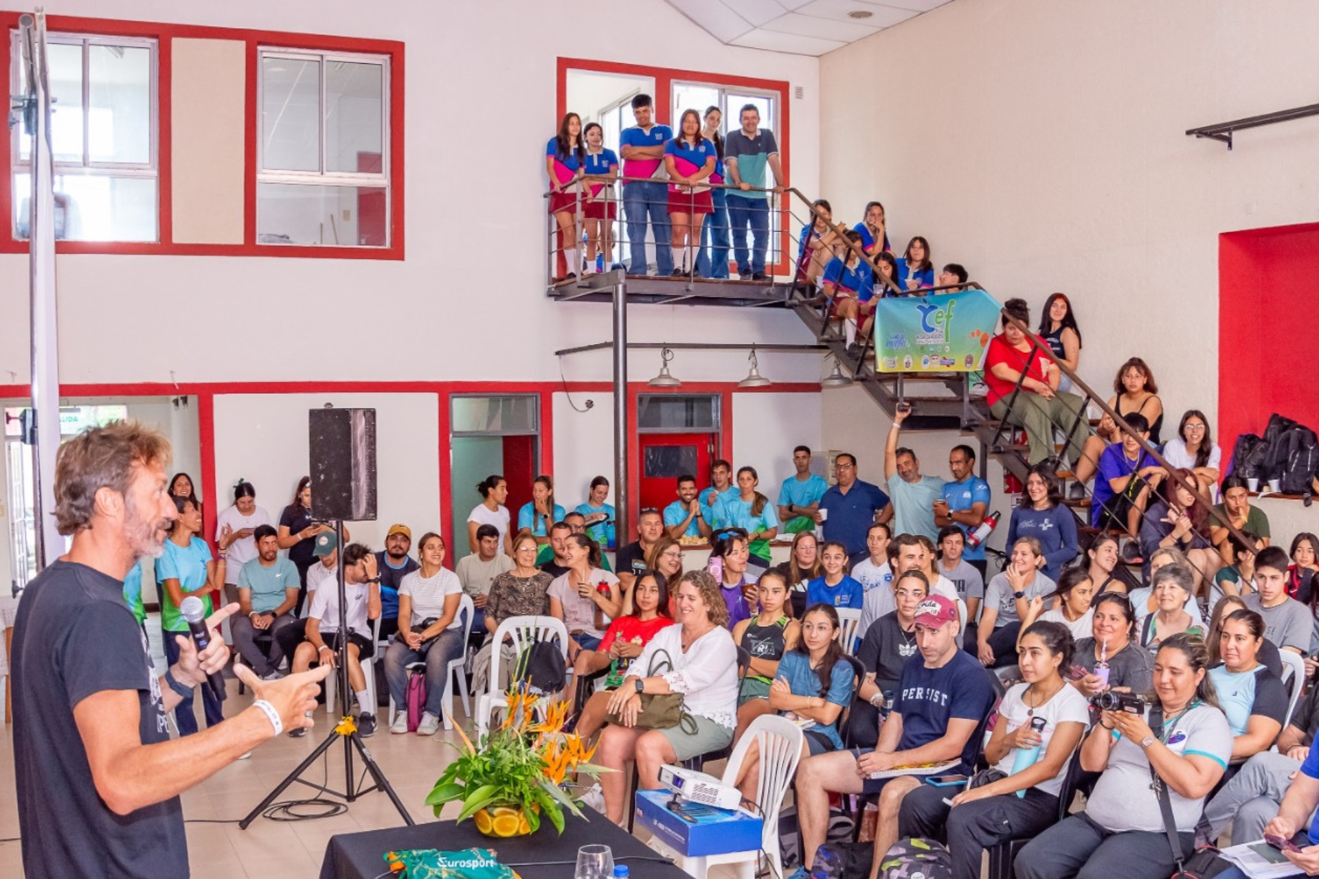 El Centro de Educación Física (CEF) Nº 22 Rosa Cardozo y la Municipalidad de La Paz organizaron la instancia formativa que encabezó el nadador olímpico y ex campeón mundial, quien capacitó a docentes de distintos departamentos y de otras provincias, entrenadores, estudiantes y público en general.