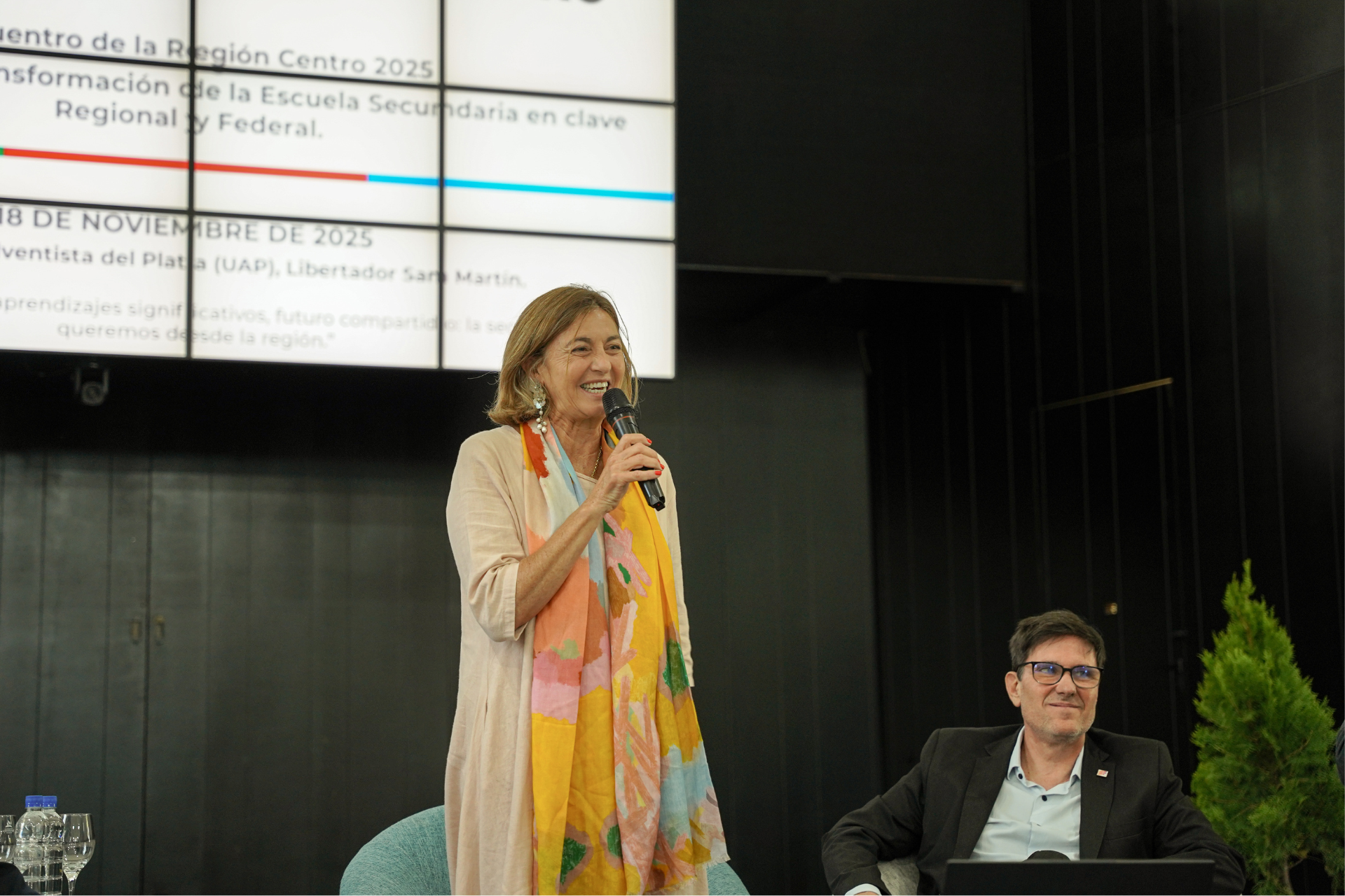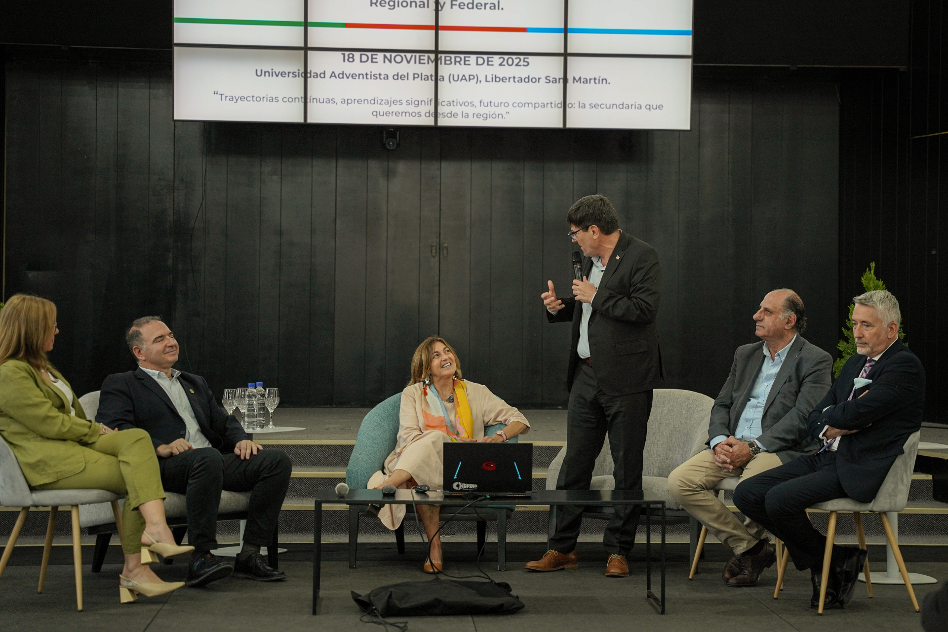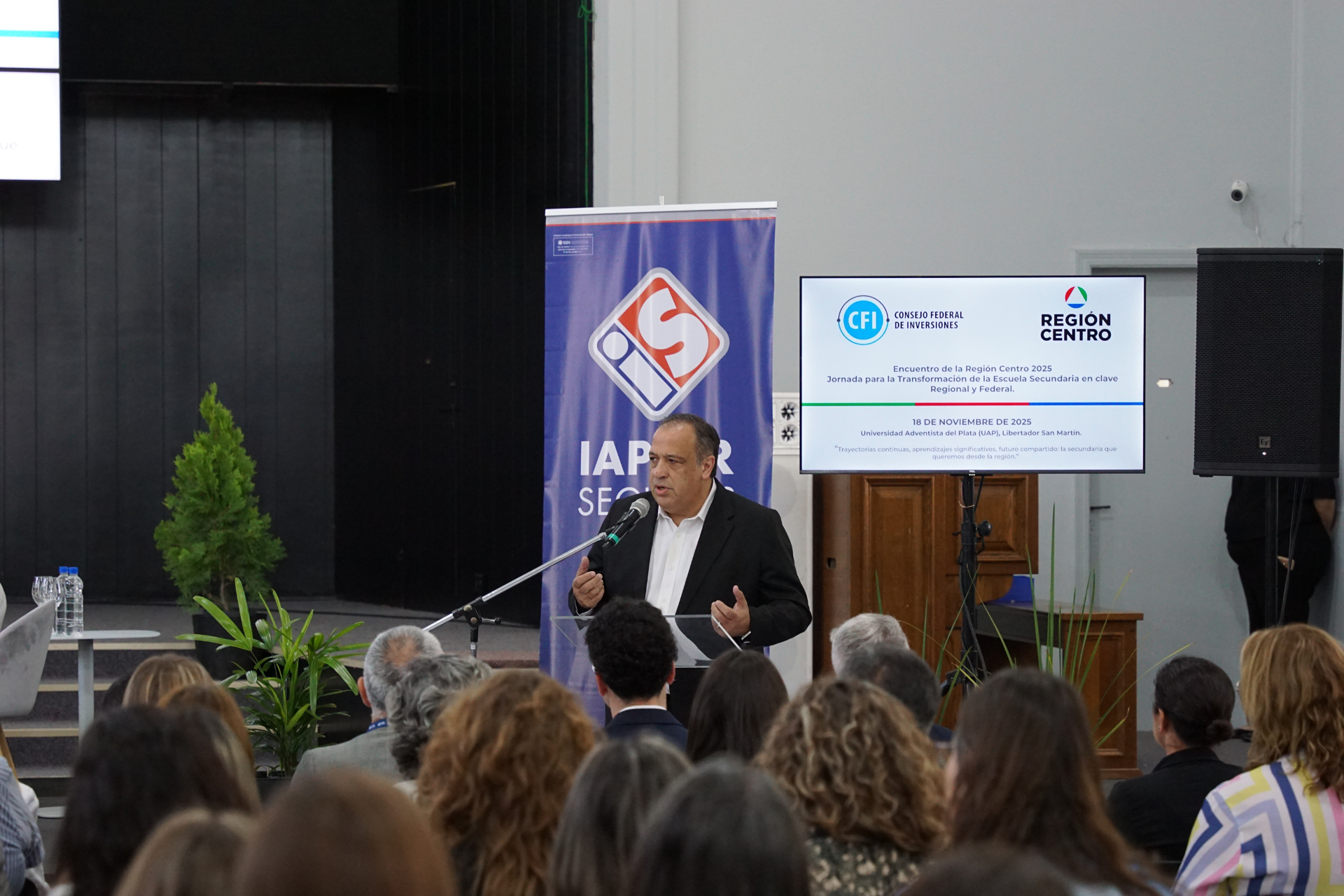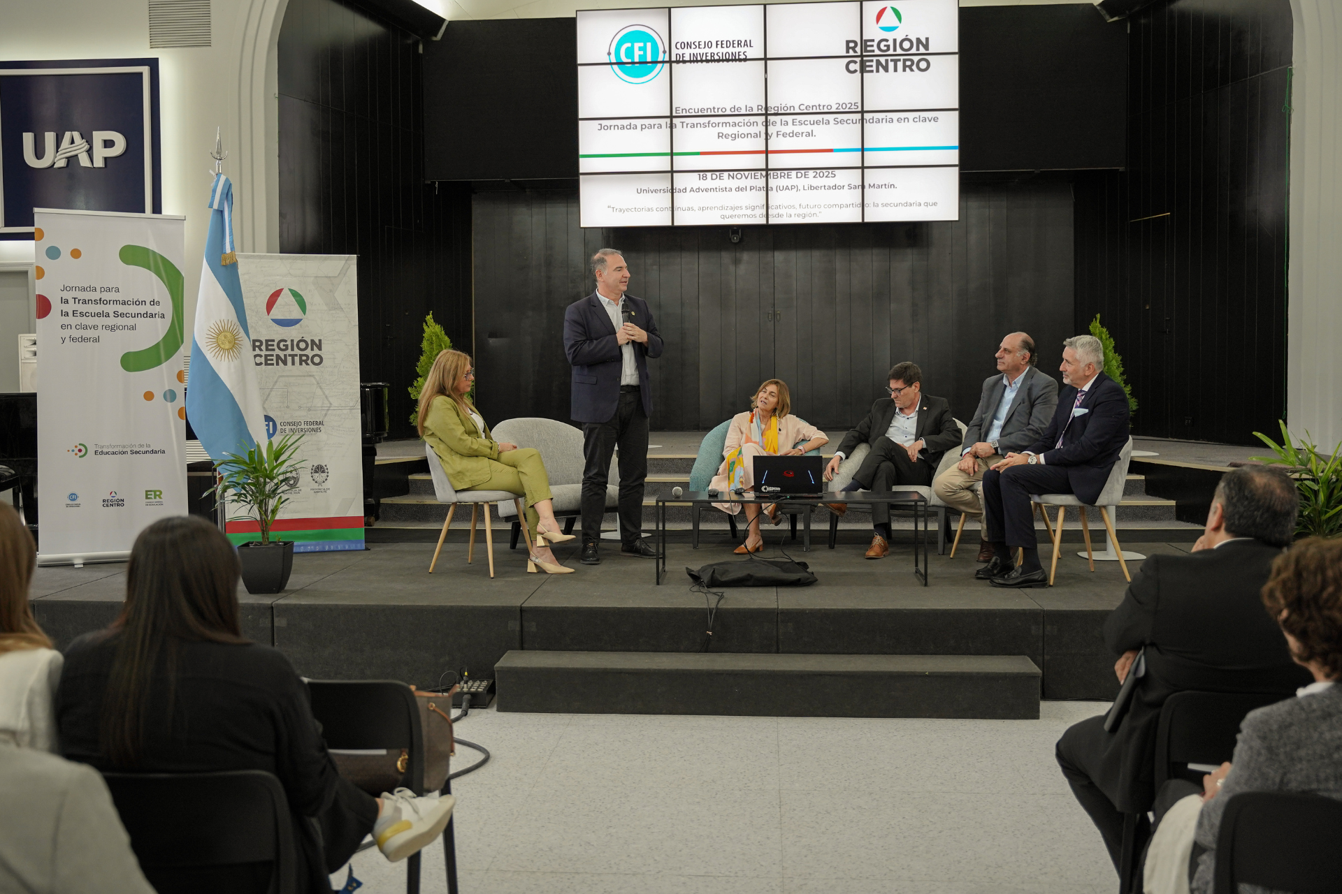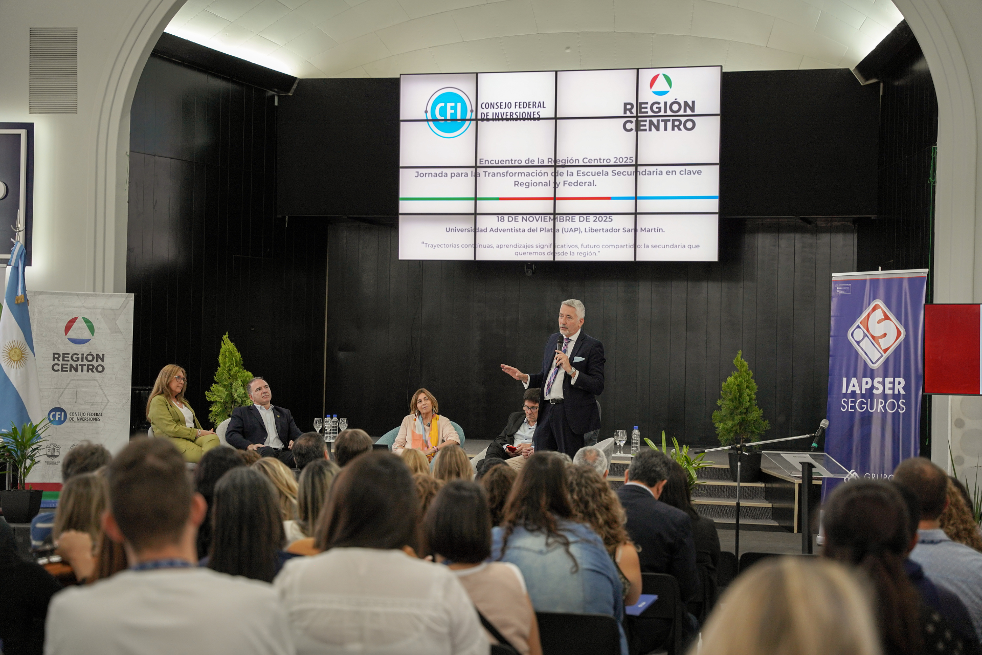 El encuentro contó además con la presencia del subsecretario de Políticas e Innovación Educativa del Ministerio de Capital Humano, Alfredo Vota, y del rector de la Universidad Adventista del Plata, Horacio Rizzo, quien dio la bienvenida junto a la presentación del coro de la universidad y del coro de la escuela secundaria de la UAP. También participó Claudia Giaccone, integrante de la Mesa Ejecutiva de la Región Centro por Santa Fe, junto a legisladores provinciales, representantes del Consejo Federal de Inversiones, autoridades educativas de las tres provincias, gremios docentes, supervisores, directivos y equipos técnicos.